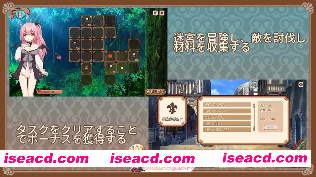 ◆ 剧情梗概 毫无长处的主人公过着平凡的生活,本以为会一直这样持续下去 然而某天,他偶然捡到一位魅魔少女 自此,成为魔物调教师的主人公迎来了生活的巨变 借助魔物的力量,他接受冒险者协会的委托,挑战迷宫冒险 不过,驯养魔物的行为似乎招致了圣骑士的敌意 ◆ 游戏内容 通过消耗性行为获得的经验值来强化魅魔 完成冒险委托以获得金币 提升冒险等级以解锁更多区域 学习逃脱技能以摆脱圣骑士的追击 ◆ 规格 基本CG数量:11张 部分配音 包含画廊模式 ◆ 操作方法 左键单击:确认 右键单击:取消