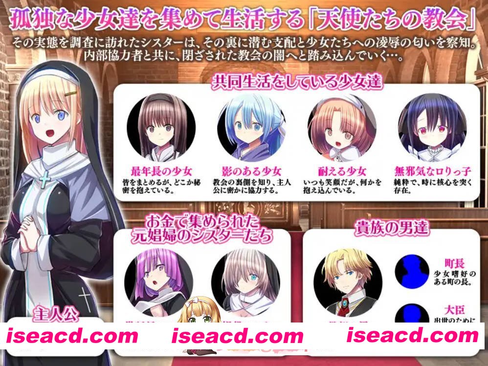 ■ 故事简介 ■ “天使们的教会”—— 一座收留孤独少女的圣洁之地。 然而,前来调查的修女却嗅到了腐败的气息…… 在这里,“救赎”的背后,是支配与调教的阴谋。 她暗中与内应合作,逐步揭开教会的黑暗面纱。 ■ 主要角色 ■ [主人公] 中央教会派遣的修女 ...