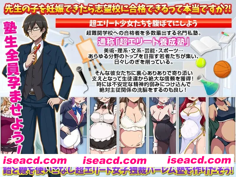 社团名:#リボン 名称:突破难关!超级精英备孕私塾 原名:難関突破!超エリート妊娠塾 贩卖日:2026年01月24日 0时 标签:#RPG #AI汉化 #PC #MTool #后宫 ,逆推 ,男性受,怀孕 游戏简介 要是怀上老师的孩子就能考上理想学校是真的吗?! 把补习班所有学生都搞大肚子吧! <让超精英少女们全部大肚子吧> 这是一所名校私塾,培养了众多考入顶尖难校的学生。 俗称“超精英养成塾”。 美术、科、文科、演艺、体育……来自各领域以顶尖为目标的年轻人汇聚于此,日夜激烈竞争。 对她们怀揣着明显的私心接近并成为依靠,从而获得学生们的绝对信任! 有时也可以利用她们不稳定的精神弱点,进行绝对主从关系的洗脑! 善用糖与鞭子,打造一个以超精英女生为目标的独裁后宫补习班吧! <引导拥有不同才能与不安的补习班学生们,走向合格> 纯文学、艺术、理科黑客、偶像、田径。 这些领域与烦恼截然不同的少女们,在超精英养成塾中为梦想而拼搏。 支撑她们动摇的内心,驱散她们的迷茫,为她们开拓(?)通往未来的道路吧! 你的(性)指导,将改变她们的命运! □ 在论述题上卡住,陷入自我否定的纯文学专攻少女。 □ 陷入“我是不是没有才能”极端消沉的艺术专攻少女。 □ 完美主义,对无法理解的部分耿耿于怀而感到不安的理科黑客专攻少女。 □ 对周围评价敏感,心态容易波动的偶像专攻少女。 □ 对伤病和身体状况容易感到不安的田径专攻少女。 ■挑战隐藏角色! 在完美环境中长大的超级大小姐少女与能瞬间理解一切的超级天才少女。 还有身份成谜的少女…… 性格与背景各不相同的她们,该如何引导至(理想的方向)……? 这些打破常识的天才们,正考验着你的(性)指导能力。 究竟能否与她们相遇,并让她们成为后宫的一员呢! <独裁后宫塾计划> “只要怀上老师的孩子就能考上志愿学校,这是真的吗?!” 我们将散布这样的传言:凡是主人公让怀孕的女孩,都能通过特殊名额优先升入志愿学校! 走投无路的她们,必将拼命恳求受精?! <孕肚后宫塾计划> 若能成功让所有私塾学员怀孕,就能完成梦寐以求的后宫私塾! 为她们换上能享受日渐隆起腹部的特别服装。 为了升入志愿学校而将他人踩在脚下,她们将展开更为猛烈的色气攻势!! <其他功能> ■可调整孕肚装扮状态下的腹部大小 ■支持隐藏角色触发流程(卡关时可利用此功能)