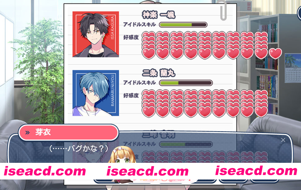 游戏介绍 你是新人偶像团体“ ♡爱恋人♡”(写作“爱恋人”读作“Melonchu”) 的经纪人。 为了保证首场演唱会顺利举办,你决不能和这些现役偶像谈恋爱……! 然而他们从一开始就好感度爆表,恋爱flag接二连三地高高竖起。 你究竟该如何化解这场危机!? 乙游界首部(!?)禁止恋爱&爆笑恋爱喜剧! 中文版将由Squad Tiramisù为您呈献! 只要竖起跟偶像恋爱的flag就会迎来BAD END! 这部题材独特的恋爱喜剧视觉小说,在NoveColle上公开两周即突破10,000下载量! 现决定登陆Steam,并追加全新个人恋爱路线!面对爱意爆表的男主角们,你该作何抉择!? ※本作是在原作《アイドルと〇〇しちゃダメですか?》(免费版)的基础上追加“个人恋爱路线”的买断制完整版。 [故事简介] 你是新人偶像团体“ ♡爱恋人♡”(写作“爱恋人”读作“Melonchu”) 的经纪人。 为了保证首场演唱会顺利举办,你决不能和这些现役偶像谈恋爱……! 然而他们从一开始就好感度爆表,恋爱flag接二连三地高高竖起。 你究竟该如何化解这场危机!? 乙游界首部(!?)禁止恋爱&爆笑恋爱喜剧! [角色介绍] 神乐 一飒(Kagura Issa) / CV:吉野 格 “哈……有趣的女人……” ♡爱恋人♡(Melonchu)的队长。负责说唱和打拍子。 自我中心且性格强势,对自己的外貌相当自信。 在一次偶然的相遇中对经纪人 一见钟情。 二条 兰丸(Nijou Ranmaru) / CV:藤江 達也 “我有话跟你说。借一步说话。” ♡爱恋人♡(Melonchu)的 舞蹈担当。 言行粗鲁,态度强硬,但为人直率, 很容易害羞。 在一次偶然的相遇中对经纪人 一见钟情。 三峠 音羽(Mitouge Otoha) / CV:伊能 幸輝 “橘子滚来滚去好好笑w” ♡爱恋人♡(Melonchu)的 社媒运营者。 性格阴沉的神秘系男子, 总爱用横跨平成到令和年代的网络流行语交流。 在一次偶然的相遇中对经纪人 一见钟情。 芝浦 零司(Shibaura Reiji) / CV:義村 優 “总感觉有些放心不下,我才一直关注着你。” 经纪公司的会计,似乎很关心你这个新上任的经纪人。 他掌握♡爱恋人♡(Melonchu)成员们的好感度,可以告诉你当前的进展。 相田 芽衣(Aida Mei) ※可更改姓名 / CV:无 女主角( 你 )。 ♡爱恋人♡(Melonchu)的 经纪人。 曾经痴迷于某个偶像组合,却因他们突然解散受到巨大打击,失去了那时的记忆。 [游戏信息] 游戏类型 恋爱喜剧ADV / 视觉小说 包含内容 游玩时长:约2小时(免费版为1小时) 结局数:共6种(根据选项产生分歧) 正篇全语音(主角除外) 具有存档/读取/自动播放/历史记录/跳过功能 含配音演员的副音轨评论