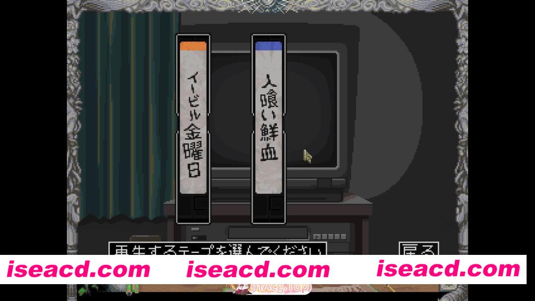 常去的录像带租赁店里的特价推车。 那里扔着一盘在录像带泡沫经济时期的混乱中发行的、闻所未闻的恐怖片。 明明是特价处理品,宣传语却很是花哨,价格也是1000日元这种莫名强硬的设定。 即便如此,你还是买下了它。 买完之后是后悔……自嘲……随后是一股扭曲的喜悦。(虽然电影内容本身很无聊)