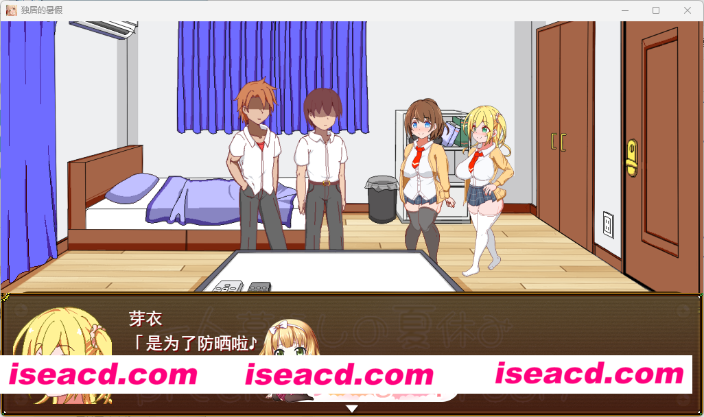 模拟经营类游戏。在暑假的31天内与两人培养感情,尽情享受独居生活。游戏共有8种结局,包括正式交往、炮友、孤独终老结局等。游戏时长约1小时左右。※无论达成哪种结局,都可以在回想模式中解放全部场景。